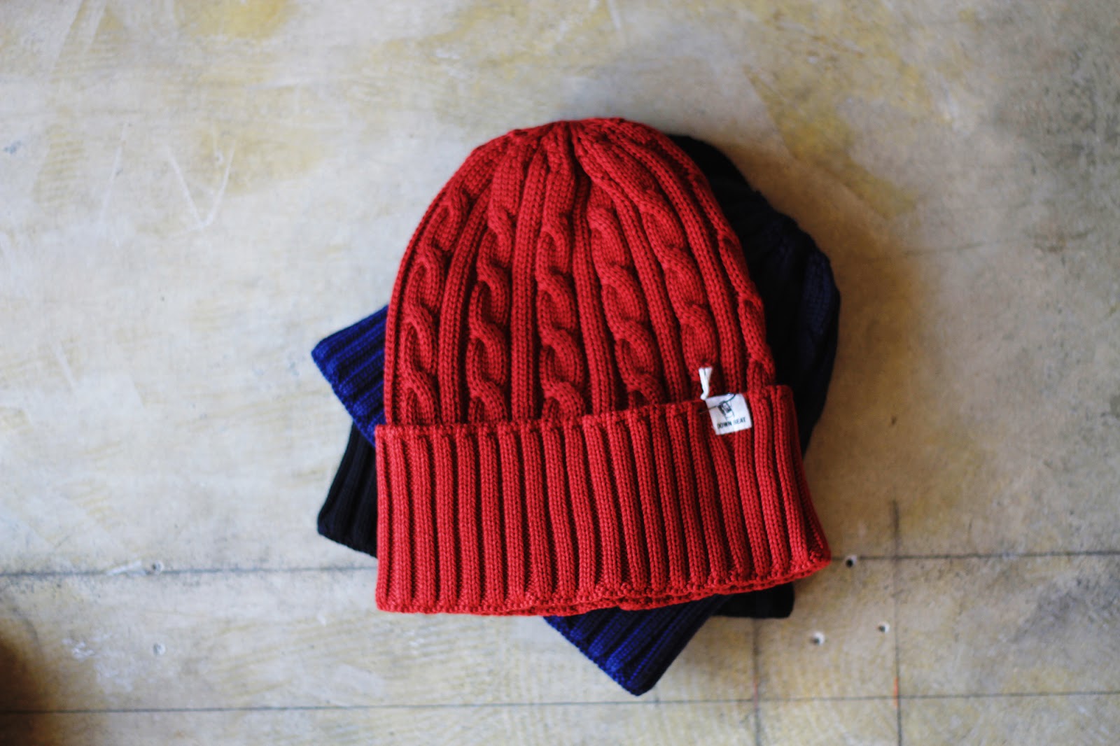 フィッシャーマンニットのケーブル編みを落とし込んだアイテム。